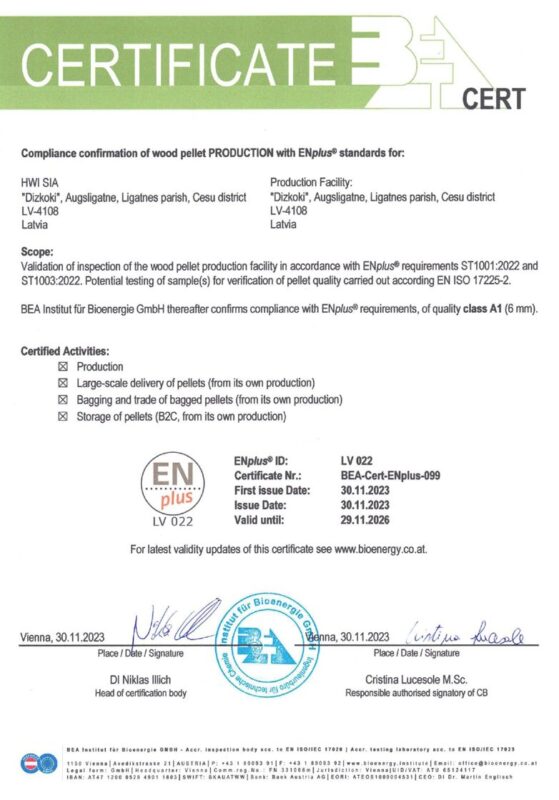Certificates EN PLUS A1